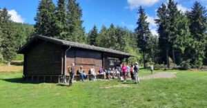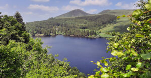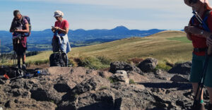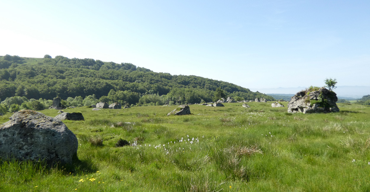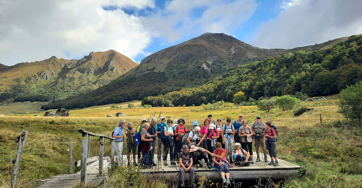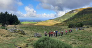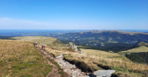 Du Lac de GUERY à travers les estives vers la Banne d’Ordanche (ancien neck : cheminée volcanique) où nous attendait un panorama à 360° sur tout le Massif Central et la chaîne des Puys dont le Puy de Dôme et le Puy du Sancy.