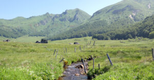 Au sud du Puy de Sancy, le Cirque de la Fontaine salée avec ses pentes douces d’où ruissellent des sources créant un écosystème de tourbières.