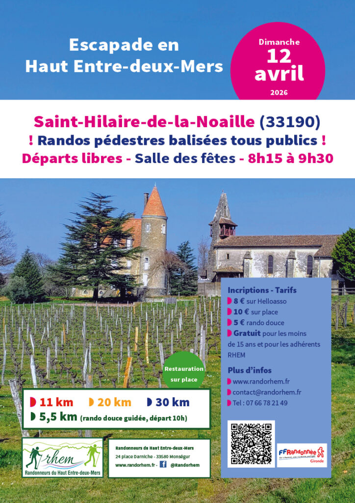 Au départ de la salle des fêtes de St Hilaire-de-la-Noaille, quatre randonnées sont possibles: 5,5, 11, 20 ou 30 km.