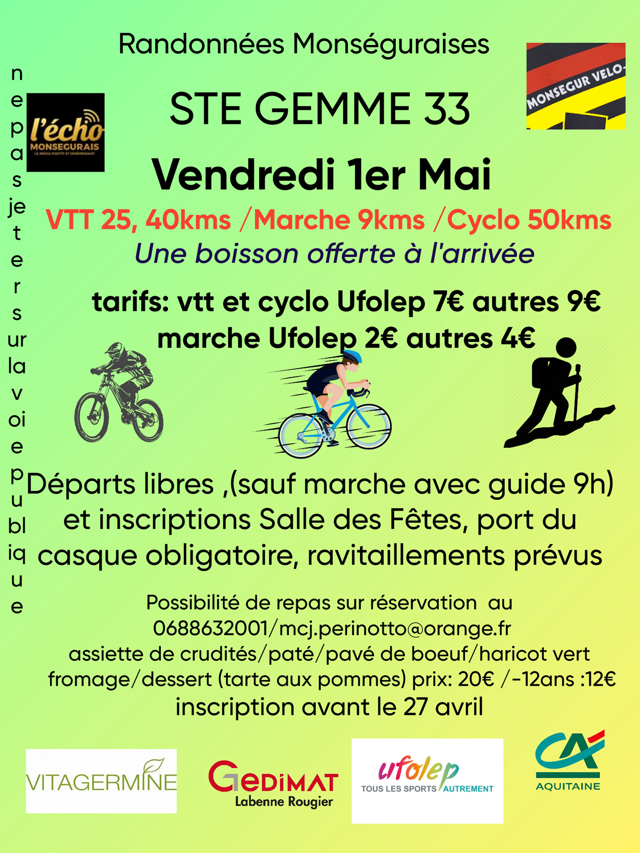 Comme chaque année, nos amis du SCM Vélo Loisirs organisent leur journée événement du 1er mai (randonnée, VTT, cyclotourisme).