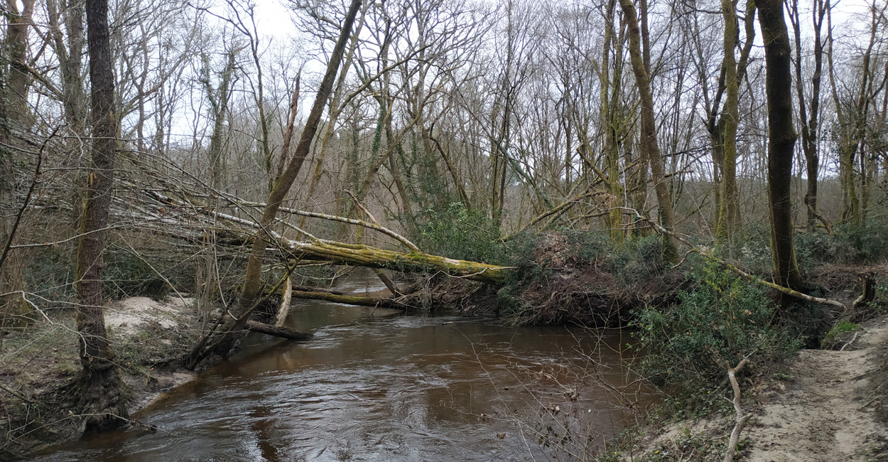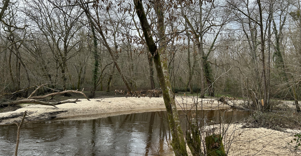 Elle nous a permis de nous élever d’une cinquantaine de mètres et de traverser divers paysages. Aux points les plus hauts, nous nous sommes trouvés dans ce qui, autrefois, était une zone de landes entretenue pour les moutons et qui est aujourd’hui devenu une forêt de pins. Aux points les plus bas, nous avons longé la vallée du Gât-Mort.