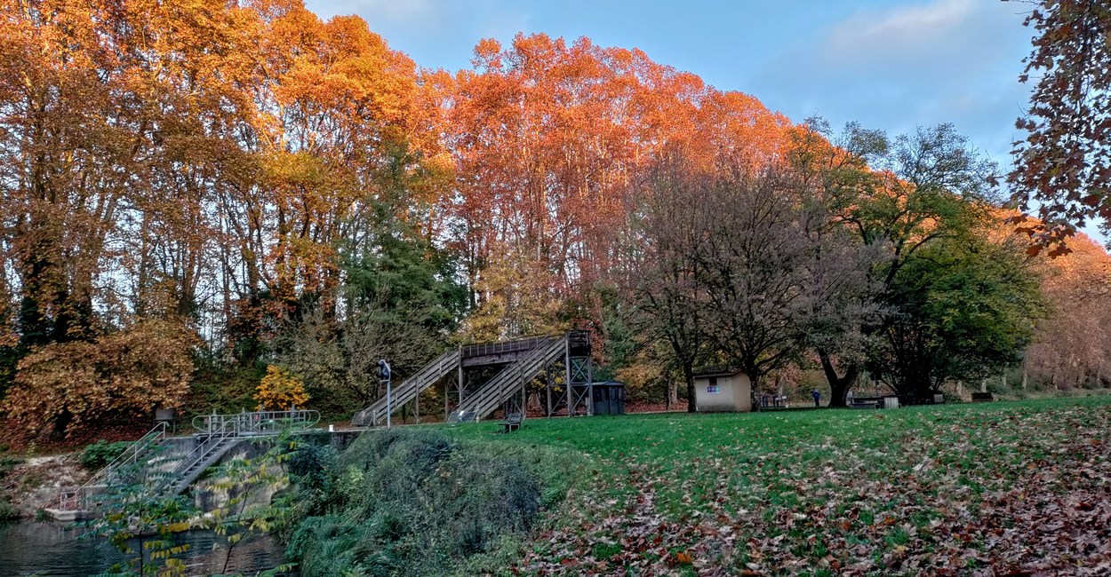 - Le soleil illumine les platanes du port de Castets