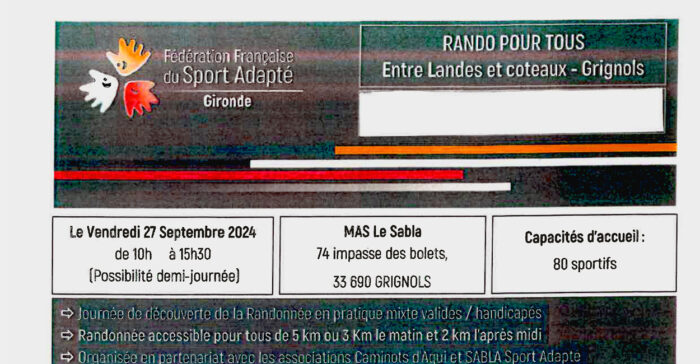 Info rando vendredi 27 septembre à Grignols Divers, Randos-tous-publicsPar Patricia23 septembre 2024Journée randos à Grignols