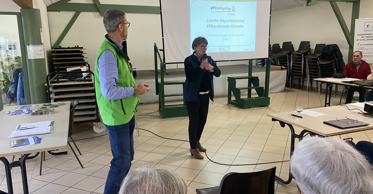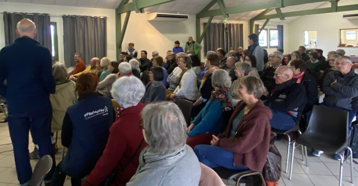 - la Présidente de la FFrando Gironde, Dominique Bouvot, élue en 2025 qui nous a présenté en détail les actions de la Fédération et répondu à nos questions. Nous la remercions pour sa présence. Vous pouvez télécharger sa présentation ici.