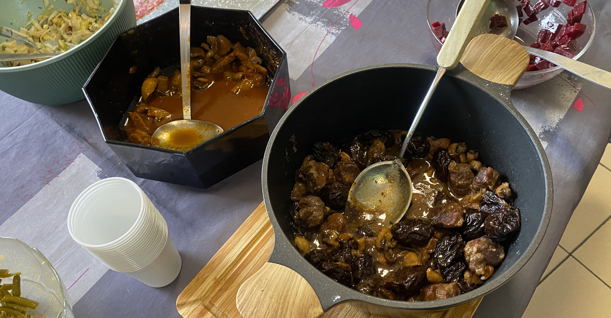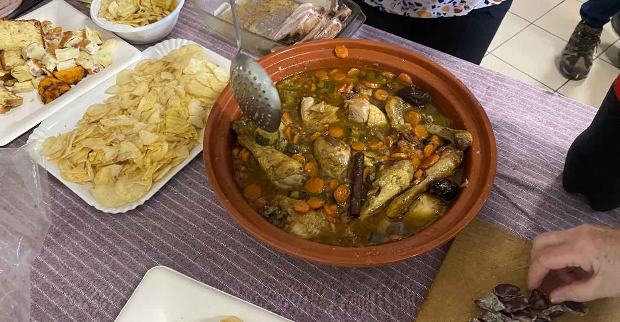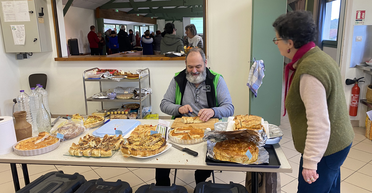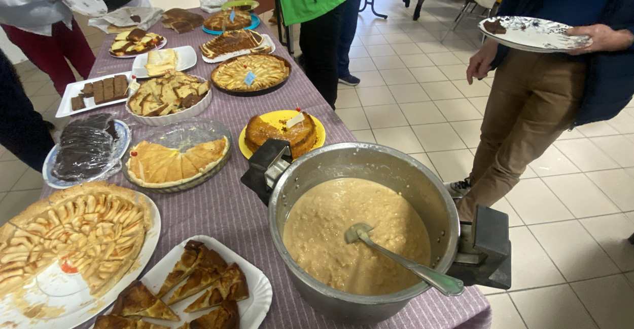 Ensuite, la place a été donnée à l’auberge espagnole façon RHEM, c’est à dire goûteuse et pantagruélique (chacun ayant apporté de quoi nourrir au moins 4 personnes…) composée d’une abondance de plats (tagine, blanquette, tartre périgourdine…) tartes salées, fromages, fruits, desserts en abondance…