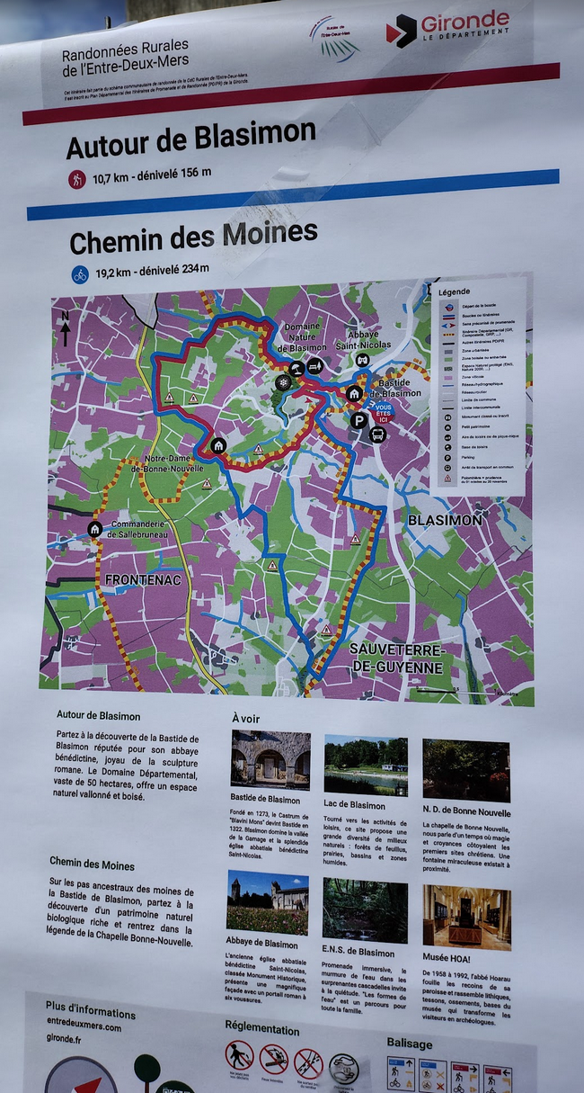 Le 7 septembre l’inauguration à Blasimon d’une boucle pédestre et d’un circuit VTT s’est déroulée en présence du maire de Blasimon, également conseiller départemental, d’une vice-présidente du conseil départemental, des représentants de la CdC de Communes Rurales de l’Entre-Deux-Mers, d’une représentante de l’OTEM, de la Cheffe de projet du Service du Développement Maîtrisé des Sports de Nature du conseil départemental et d’un vice-président des RHEM.