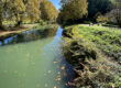 Arrivés à Lamarque, nous avons rejoint les bords de Garonne par un sentier boisé parallèle fort agréable, et entrevu de loin le pont de Tonneins. Sur le chemin du retour, le temps a commencé timidement à se découvrir ce qui nous a permis de faire une pause au bord de l’Ourbise pour déguster les fondants au chocolat préparés conjointement par Fabienne et Pierre (non non la pâtisserie n’est pas qu’une affaire de femmes…). Puis forts d’une énergie dopée par la gourmandise, nous avons cheminé dans l’herbe le long de l’Ourbise pour nous rendre à la réserve naturelle de Mazière – que nous envisageons de visiter plutôt au printemps – puis pour atteindre le canal de Garonne paré de ses plus belles couleurs d’automne.