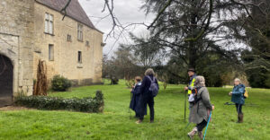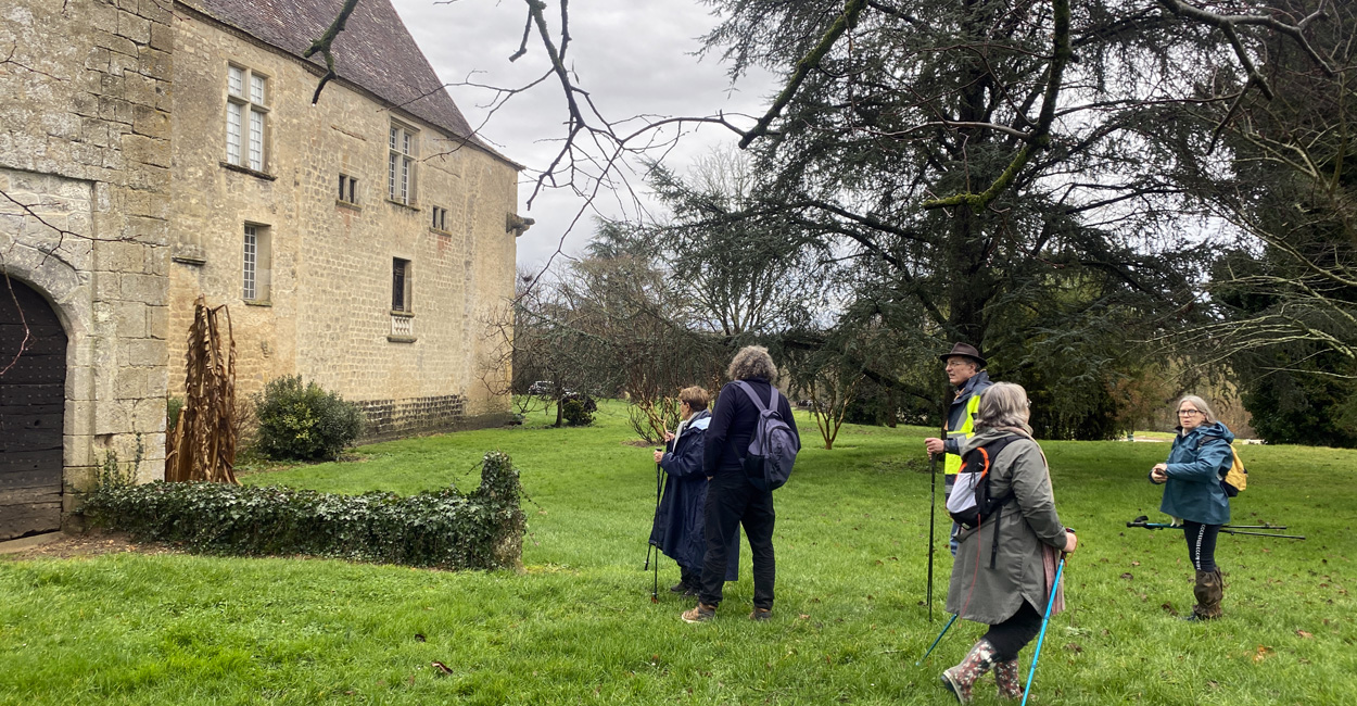 Le ciel était bien chargé, tout le monde bien équipé, de pieds en “cape” (de pluie) ! Il aurait plu des cordes que notre groupe n’était pas prêt à renoncer à la visite de ce haut lieu de notre patrimoine local qu’est le Château de Lavison… Mais la chance était avec nous : nous sommes restés la tête au sec (mais les chaussures humides) pendant toute la randonnée !